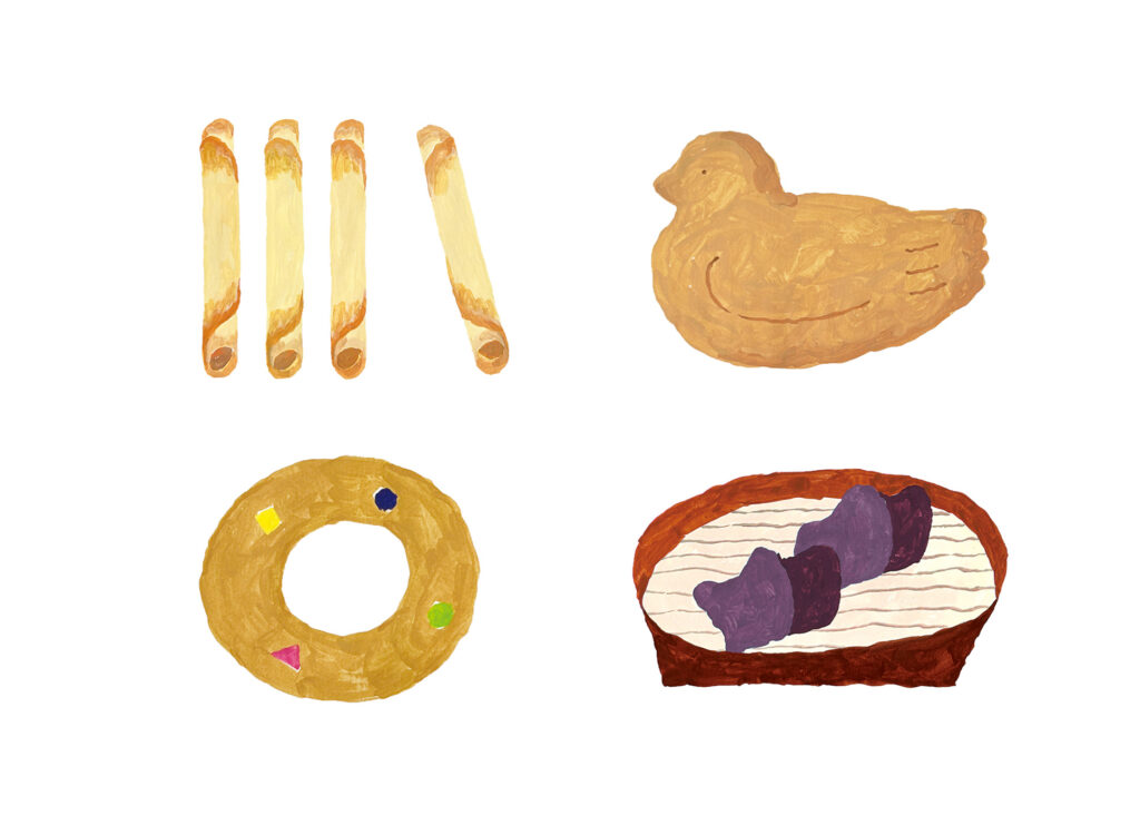 in 2025 \ Pick up / 池田書店『お菓子の手みやげ帖』スイーツなかの著 / 挿絵 マーナ『2026年オリジナルカレンダー』 / 挿絵 小美濃園『オミマーケット SWEET BAKE FARM』/ メインビジュアル